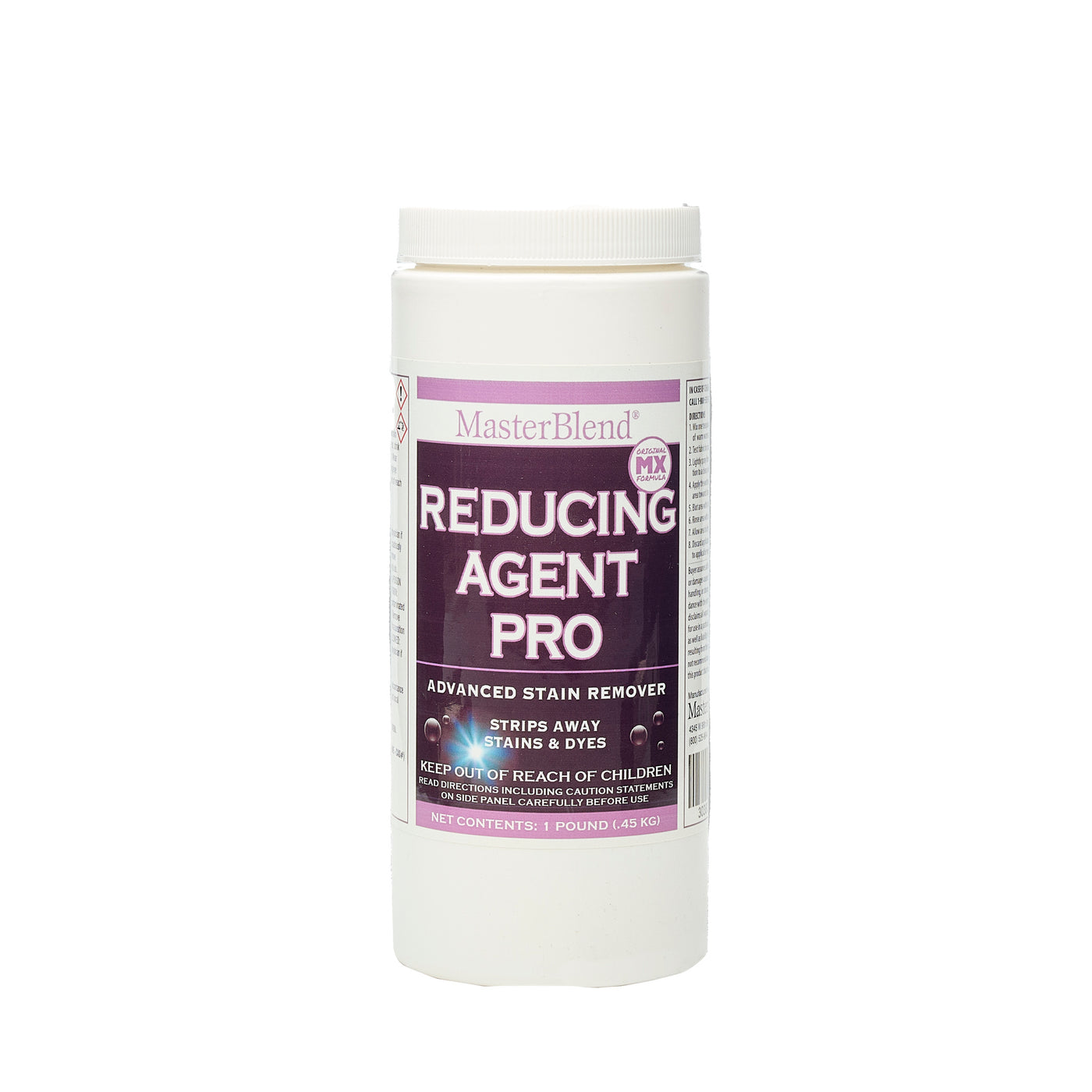 Packaged in a convenient one-pound container, MasterBlend Reducing Agent Pro is ready to dilute and use on your toughest dye-related stains. It's an essential tool for professional cleaners dealing with discoloration from synthetic dyes on carpet and upholstery.