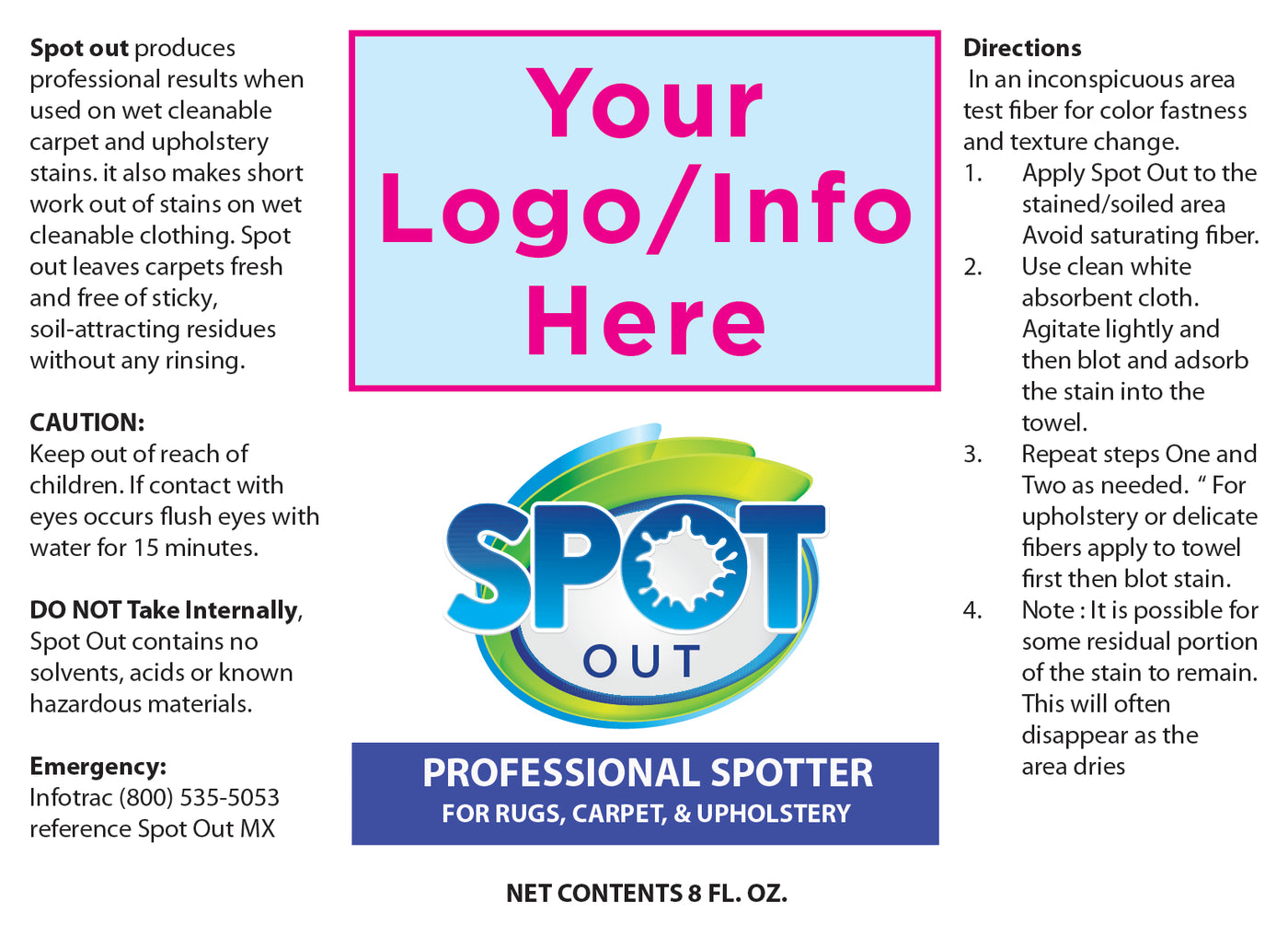 Create lifetime, repeat customers with MasterBlend custom label spot out in 8oz size! At less than $5.50/bottle delivered, spot out is one of the most cost effective ways to generate repeat business!